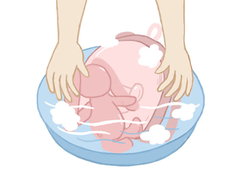 Dieser Rucksack und das Plüschtier sind nicht maschinenwaschbar. Wir empfehlen, sie vorsichtig von Hand mit mildem, seifigem Wasser zu waschen und an der Luft natürlich trocknen zu lassen.