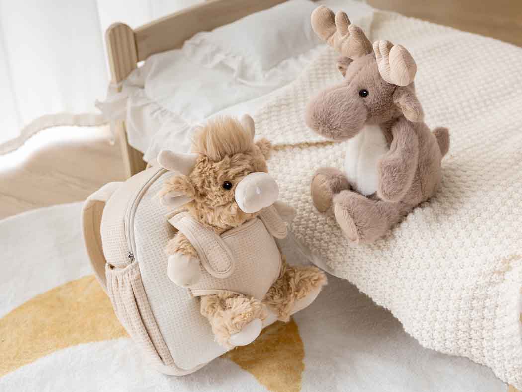 Moonkie Hug & Go™ Duo – Highland-Rind-Rucksack & Rentier-Plüschtier