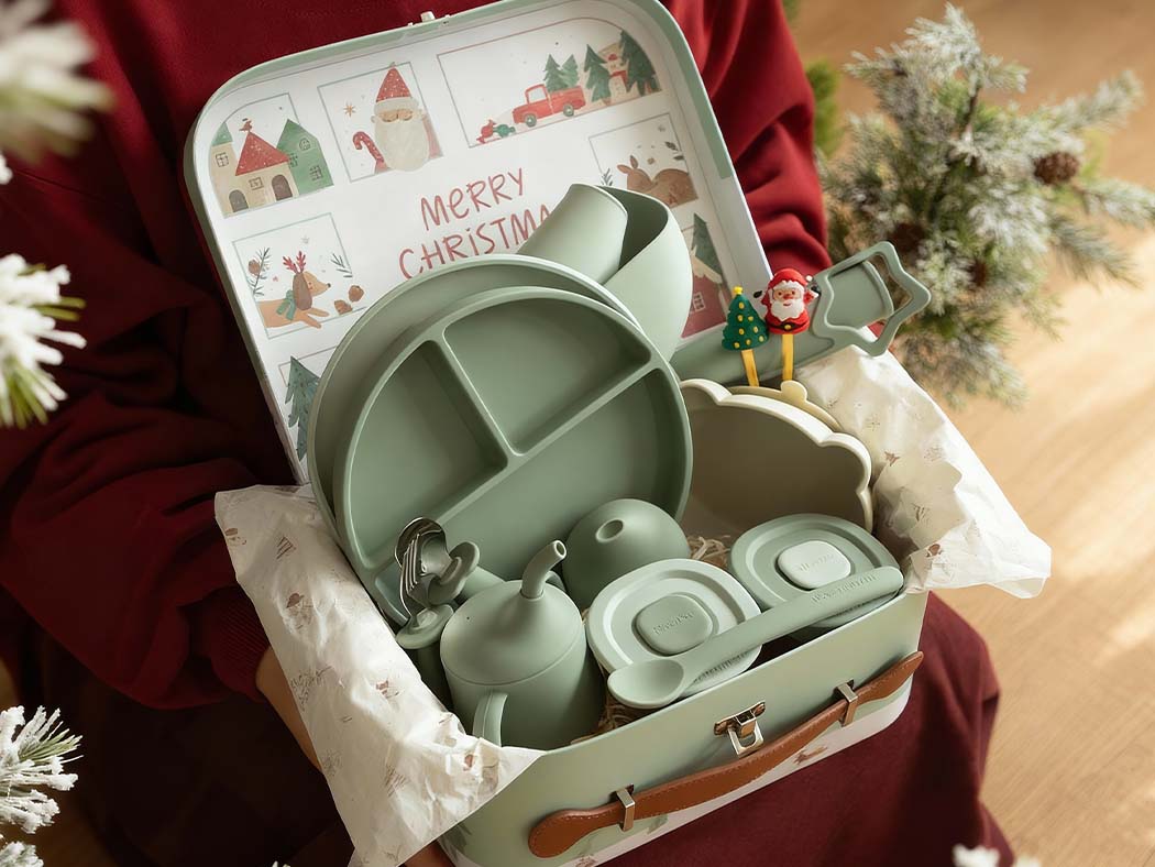 Entwickelt, um Deinem kleinen Schatz den sanften Übergang vom geführten zum selbstständigen Essen zu erleichtern. Die leicht zu greifenden Griffe sind liebevoll für kleine Hände geformt und verwandeln die Weihnachtsmahlzeiten in ruhige, freudige Momente – und in wertvolle Erinnerungen an die Festtage.